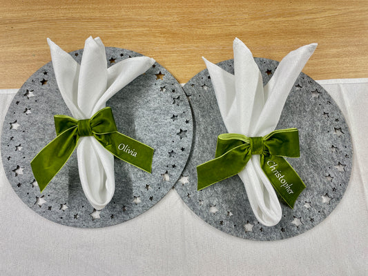 Luxury Personalised Velvet Bow Napkin Rings | Ideal Wedding Place names | Unique Wedding table setting Favours | Multiple Colours Available