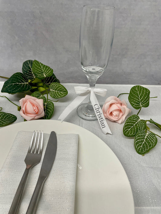 Personalised Wine Glass Name Ribbons, Wine Glass Charms, Place settings, Custom Party Decoration Favours, Event Name Tag decal, Table Decor
