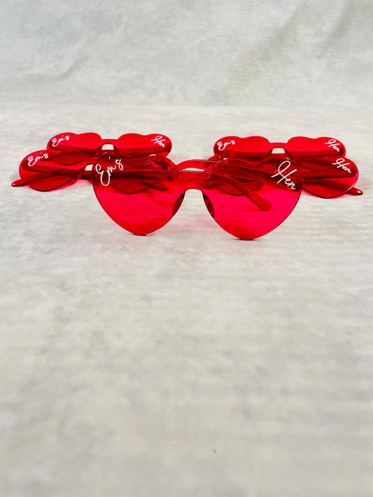 Personalised hen party pink heart sunglasses, matching hen party accessories, hen party goody bag fillers. Pink Heart Sunglasses Party Props