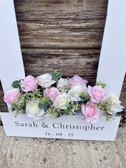Wedding Polaroid Selfie Frame with Artificial Flowers included | Customizable Photo Booth Prop for Guests, Perfect for Social Media Sharing