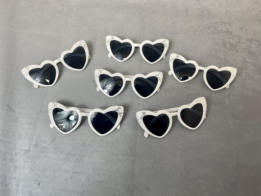 Bride Tribe White heart sunglasses, matching hen party accessories, brides sunglasses, bacholerette party gists, hen party bag fillers.