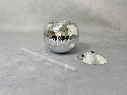 Personalised Disco Ball Cup with Straw, re-usable party cups, hen party bag fillers.