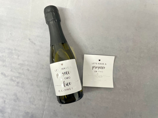 Personalised mini prosecco bottle labels, ideal for hen partys, have a prosecco or two she's saying I Do, self adhesive custom labels.