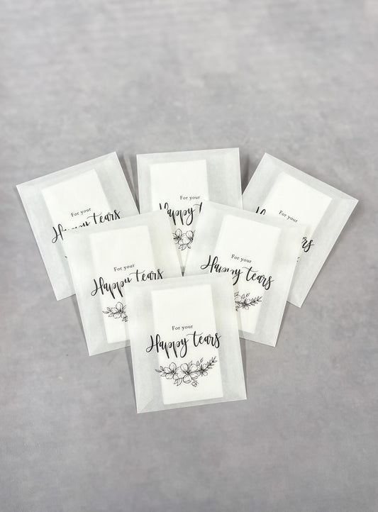 For your Happy Tears, Wedding Tissues, Pre Filled Wedding tissue packet, Wedding Guest Favours, Customisable Wedding Décor, Tissues included